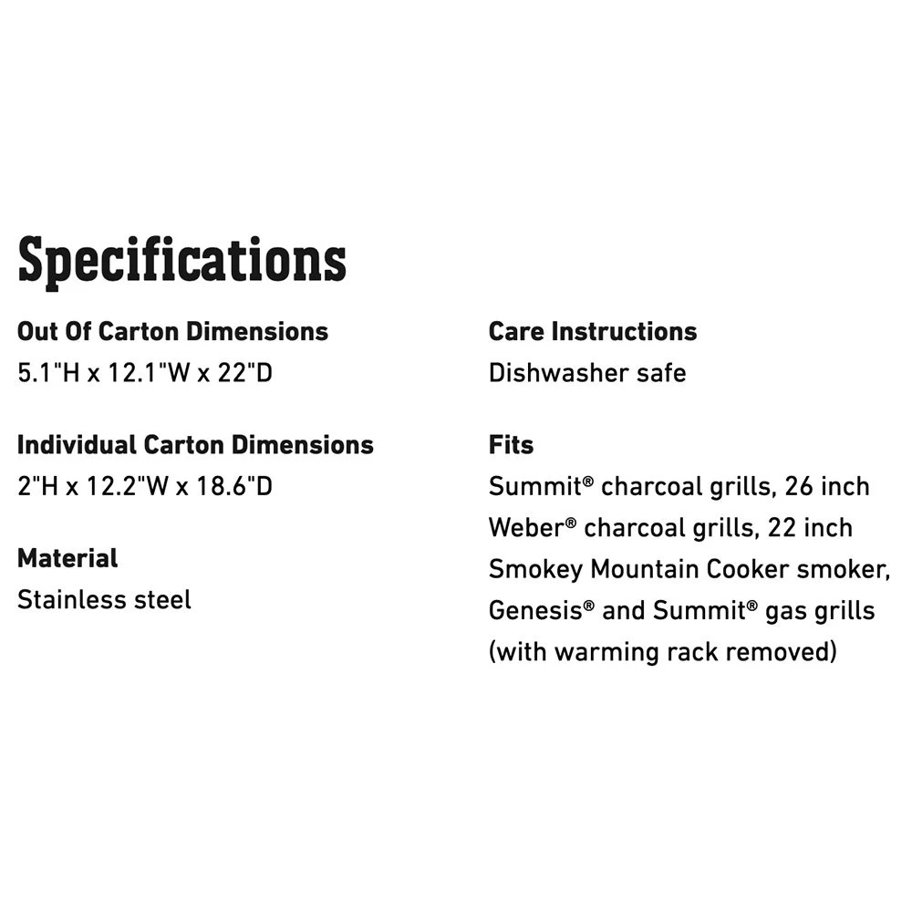 Weber Expansion Grilling Rack (WEB-7647) provides added flexibility when cooking on a Weber charcoal grill. This smart collapsible rack sits right on the grill grate, providing the perfect spot for toasting buns and keeping burgers warm.