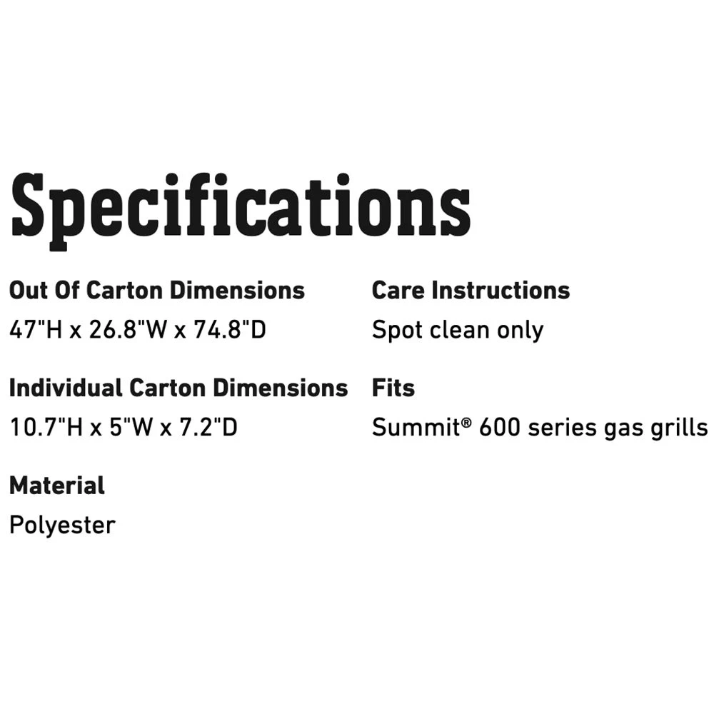 Weber Premium Grill Cover for Summit 600 Series Grills (WEB-7109) offers an excellent way to protect your Weber grill from the elements. Weather-resistant fabric helps shield your grill from rain and snow, while the smart fastening straps ensure the grill cover stays in place for lasting protection.
